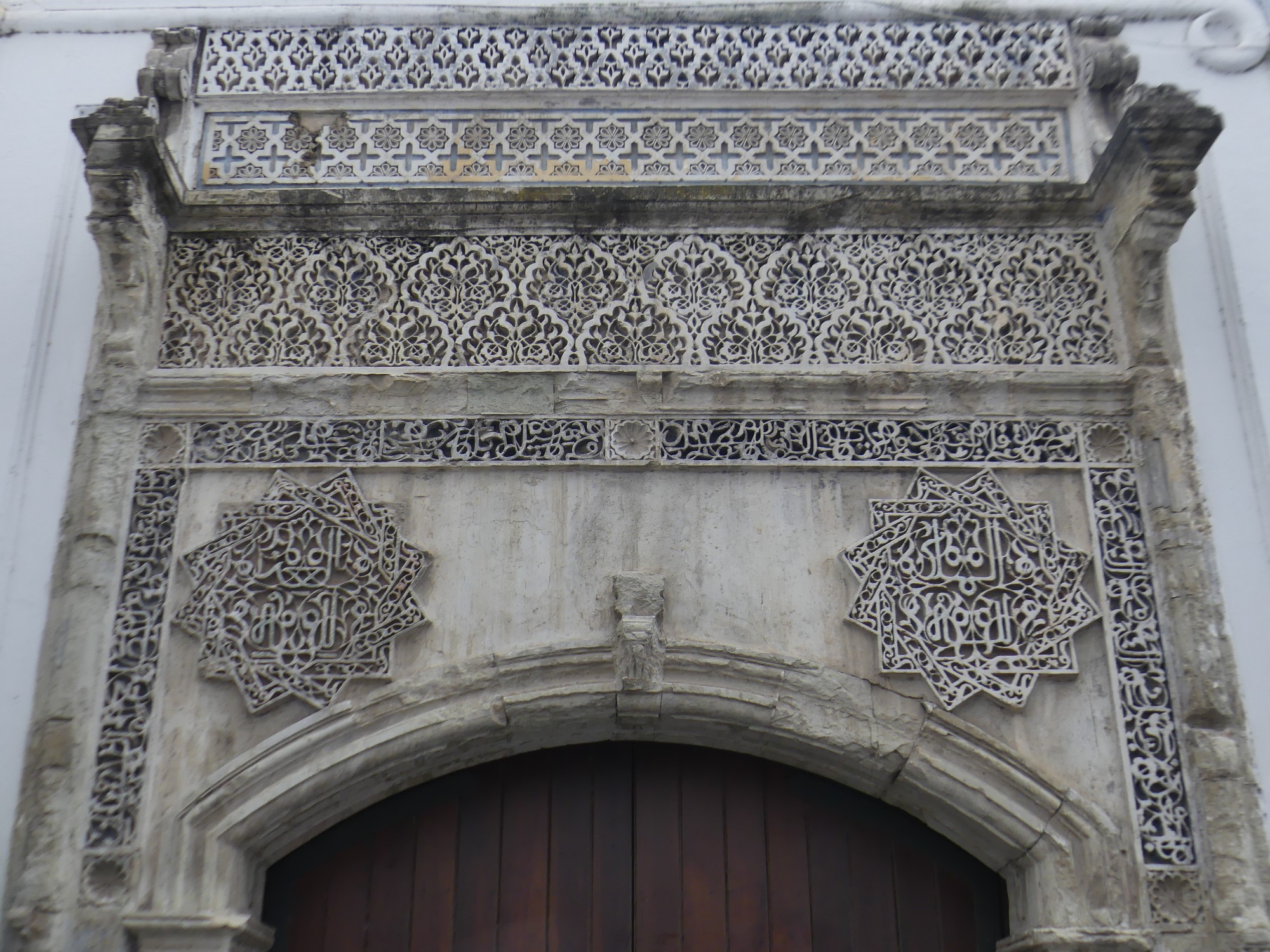 étroites et trop hautes. Au moins, pas de contraste compliqué à gérer avec tout noir d’un côté et cramé de l’autre. J'aime bien cette médina, elle est calme, habitée, pas trop commerçante, propre. Mes pas me mènent ensuite vers d’autres intérêts comme le bassin Agdal, réserve d’eau ancestrale, accolé aux écuries et greniers antiques fermés actuellement, le palais royal dont on ne voit que la porte mais dont on devine l’étendue puisque le tour de l’enceinte fait 3,5 km. En fait, à l’intérieur, se trouvent l’ancien palais en ruines de Moulay Ismaïl, le palais de Momo 6, et le golf royal. On voit tout bien en vue satellite sur gogole map. Si je suis passée voir le mausolée de Moulay Ismail, c’est uniquement pour voir les mosaïques, les boiseries et la pierre sculptées, l’art floral, la géométrie et la calligraphie qui sont les 3 piliers de l’art arabe. J'ai terminé par la cité médiévale, déroutante, un autre monde d’arches, de murs très hauts, de voûtes, de vieilles pierres sur des murs rénovés. Beaucoup d’impasses. La cité est habitée, par des familles. Ce lieu est vraiment surprenant. Ce sera le
