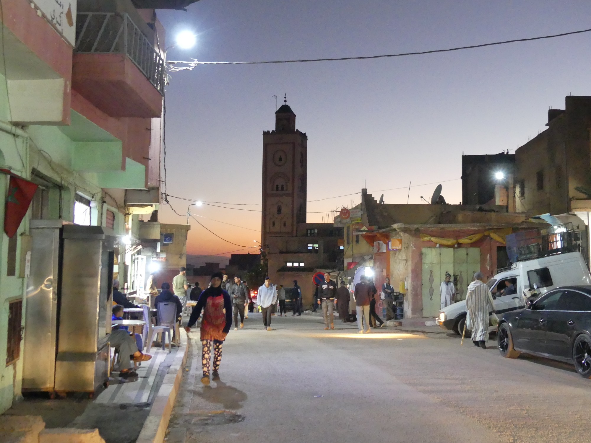 Autour de 19 heures, au coucher du soleil, toute la population vient flâner et les terrasses s’emplissent d’hommes, et seulement d’hommes. Autrement dit, je me sens un peu regardée… J’ai bien aimé Azilal, c’était calme pour une ville marocaine. Mon voisin de palier est un Flamand, seul européen croisé ici.