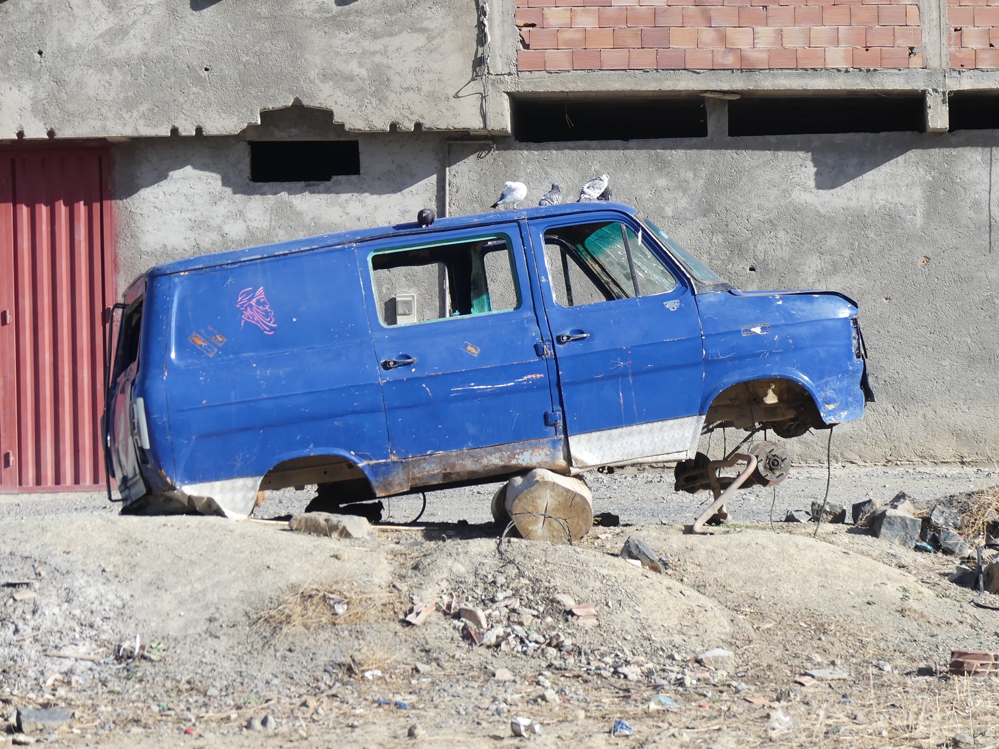 J’ai passé quelques heures à regarder passer la vie, les 4L, kangoo, Dacia, Mercedes, motos et quads, les “petits taxis”, qui sont ceux, jaune pâle, qui restent dans la ville et que tout le monde prend, les trottinettes électriques, les vélos déglingués, les bus de ville “luxe”, ma foi dans un état de délabrement avancé, les minibus de transports touristiques, rutilants, les taxis collectifs aux galeries chargées, les gros bus intervilles, et les bus luxueux des