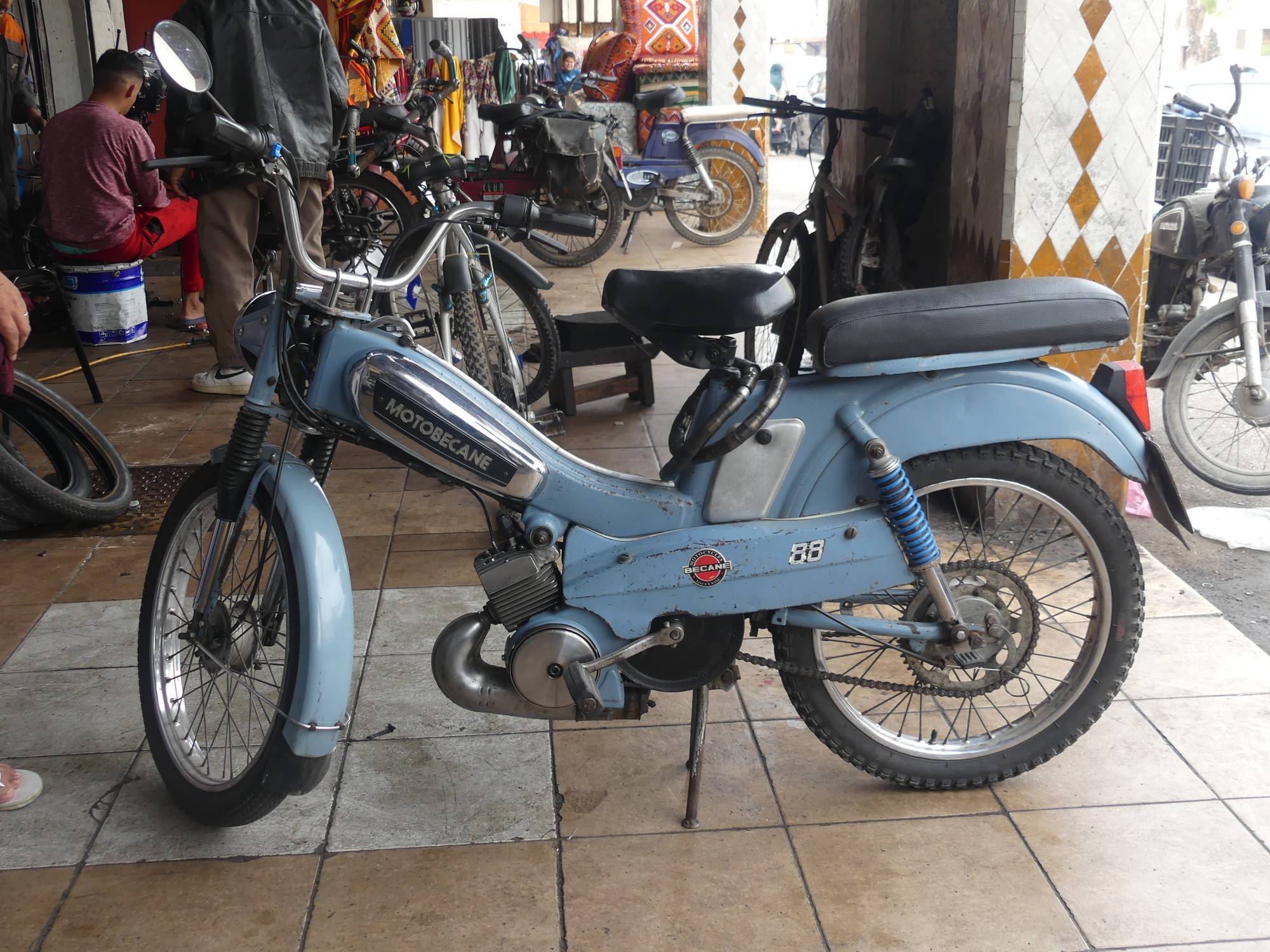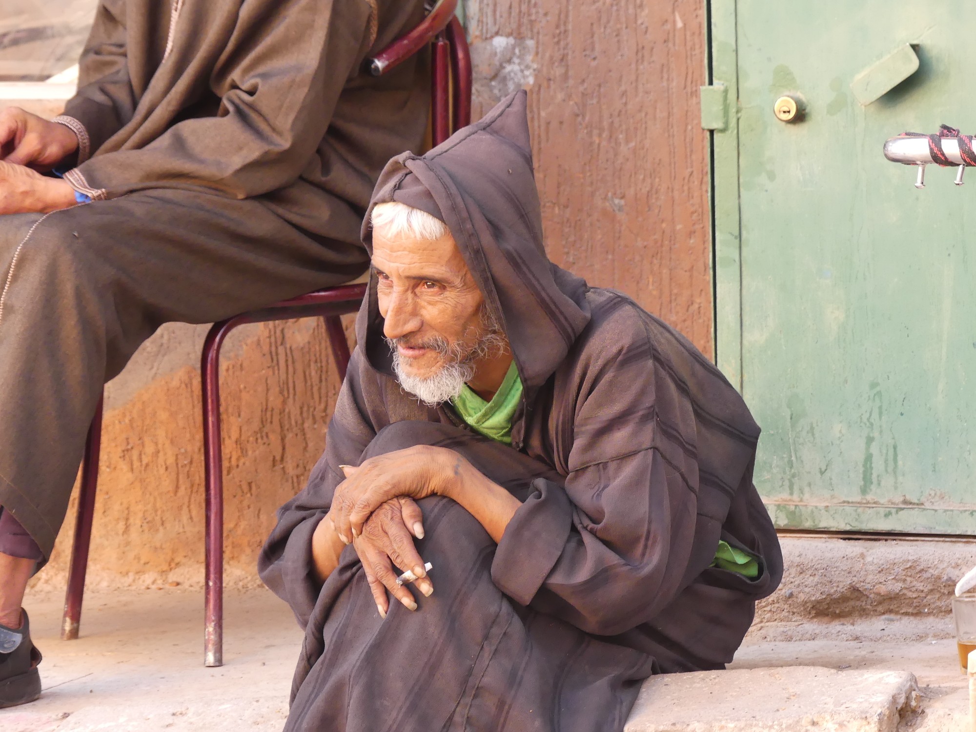 opérateurs touristiques. J’ai vu passer un cycliste au moins octogénaire, marocain, frisant le mètre cinquante et tremblotant, maillot cycliste et casque, les mains en position basse sur le cintre, à environ 6 km/h. Et puis ici les simplets, les handicapés de tous genres et les estropiés ne sont pas remisés dans des institutions, dans la journée ils sont dans la rue. Les regards ici ne sont pas pesants, ils ont l’habitude des touristes occidentales. J’ai eu une longue discussion à propos du statut des femmes, de l’état de la France, et de sa vie avec Hamid, le sympathique employé de cet hôtel, retraité de l’armée. Les femmes de ménage sont black, parlent berbère et chouilla français.