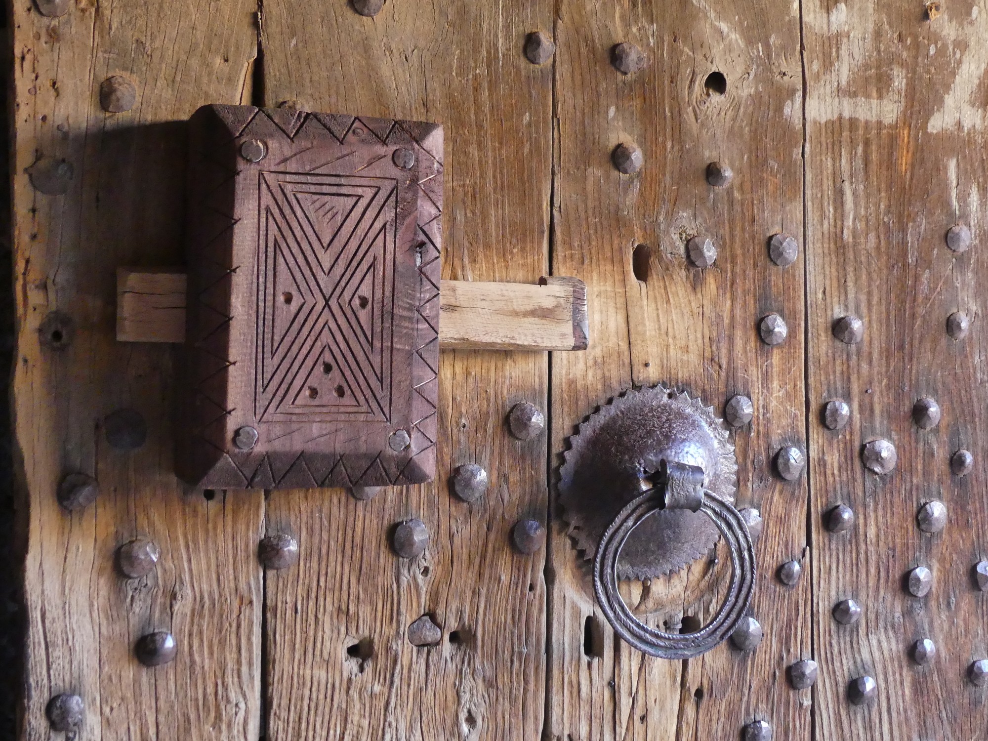 à 2500 m, les paysages sont juste un gros coup de coeur et donnent franchement envie de s’attarder en rando itinérante dans ce massif. Autant de vallées douces, de sommets bruts, de villages pittoresques, une activité pastorale intense, des sources d’eau partout, bref, l’idée d’un paradis sur terre, à 2500 m d’altitude. Comme mon étape est très courte, je me prélasse, me vautre dans ce décor enchanteur, me repais de bonnes sensations, et finis par arriver à Askaoun vers 13 h. Petit arrêt gargotte, achats pour le lendemain et hop, Blake arrive. Je le suis jusqu’à la maison sur les hauteurs du village voisin. Premier thé. Pendant qu’il prépare le tajine pour nous deux, je me douche et règle perfecto mes freins dont j’ai changé les plaquettes il y a deux jours. Tajine. Tour en scooter dans les jardins, visite de l’agadir du village, ce grenier fort à la fois collectif et individuel, mais ancestral et toujours usité. Son gardien se fait vieux. Retour à la maison, thé, puis dîner vers 21 heures et enfin, enfin… dodo ! Tous ces repas devraient finir de me requinquer !